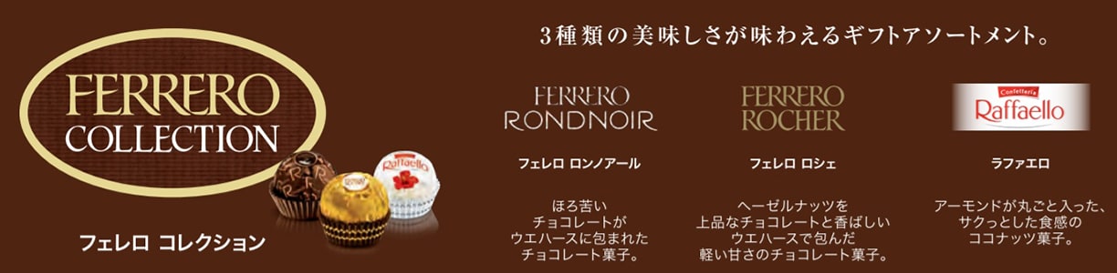 フェレロの人気ブランドをセットした、どなたにも喜ばれるギフトアソート。