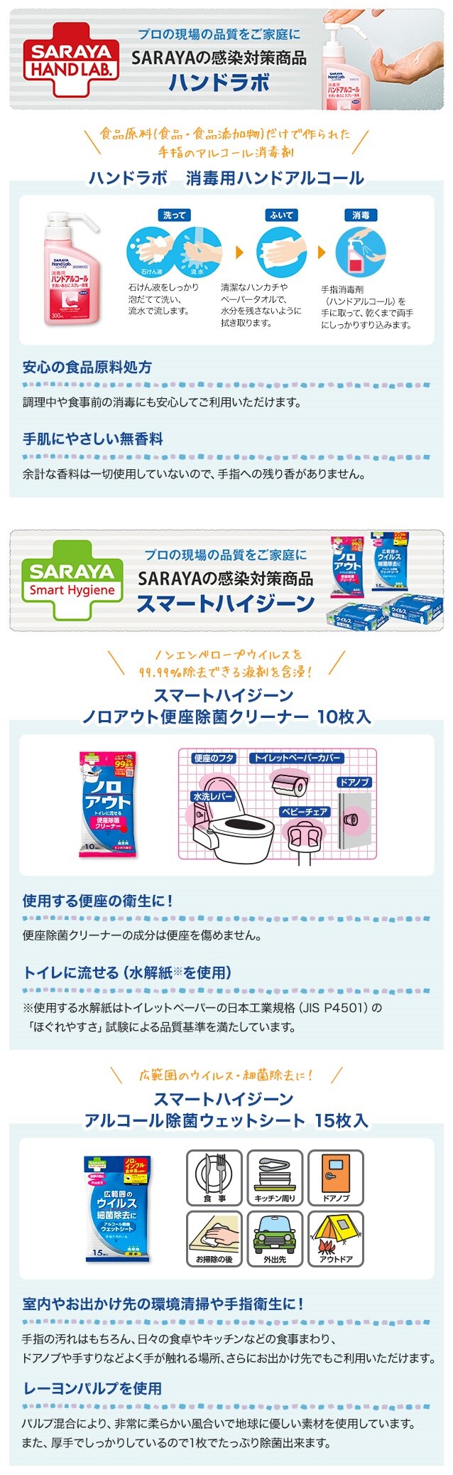 【ハンドラボハンドアルコール300ml / スマートハイジーン アルコール除菌ウェットシート15枚入・ノロアウト便座除菌クリーナー10枚】日本