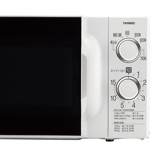 大型のダイヤルを2つ配置。タイマーは使用頻度の高い5分までを幅広く取りました。出力はハイパワー700W。料理の温めなおしはもちろん、解凍やお料理などにも幅広くお使いいただけます。