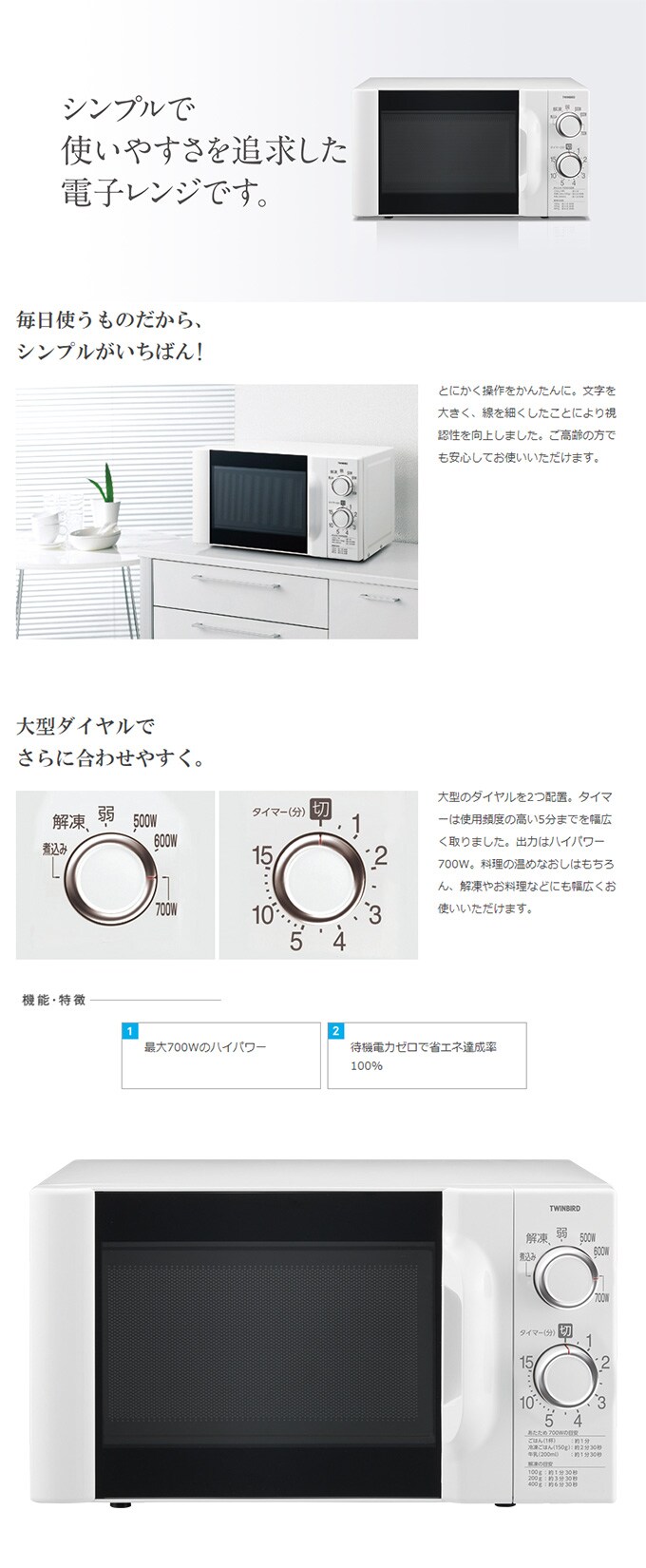 - ツインバード(TWINBIRD)/電子レンジ(東日本 50Hz専用)ホワイト/DR-D419W5