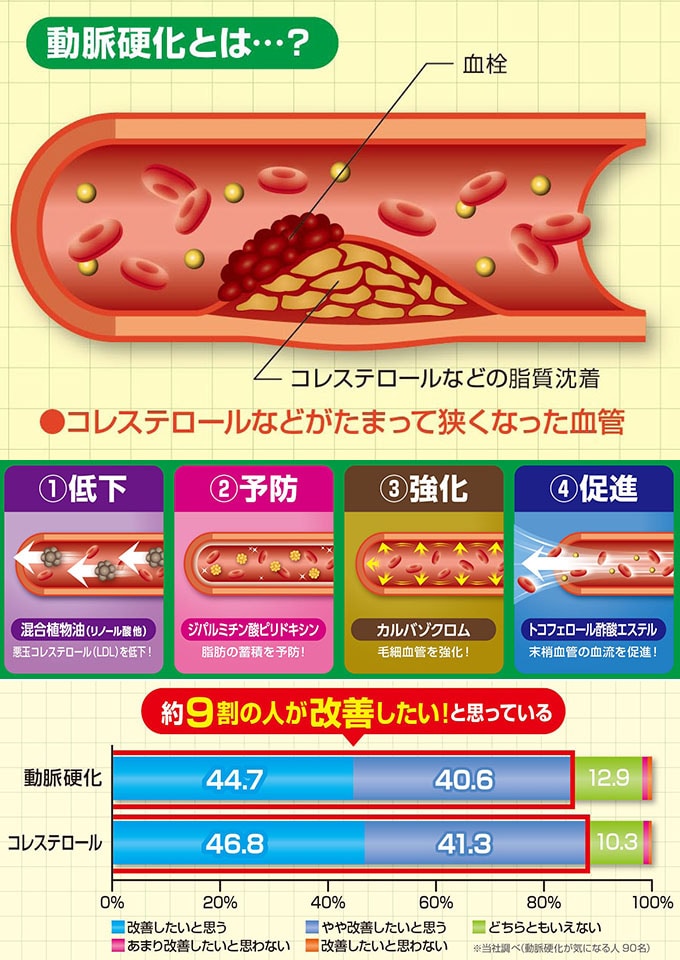 動脈硬化症の予防、高コレステロール血症の改善に。