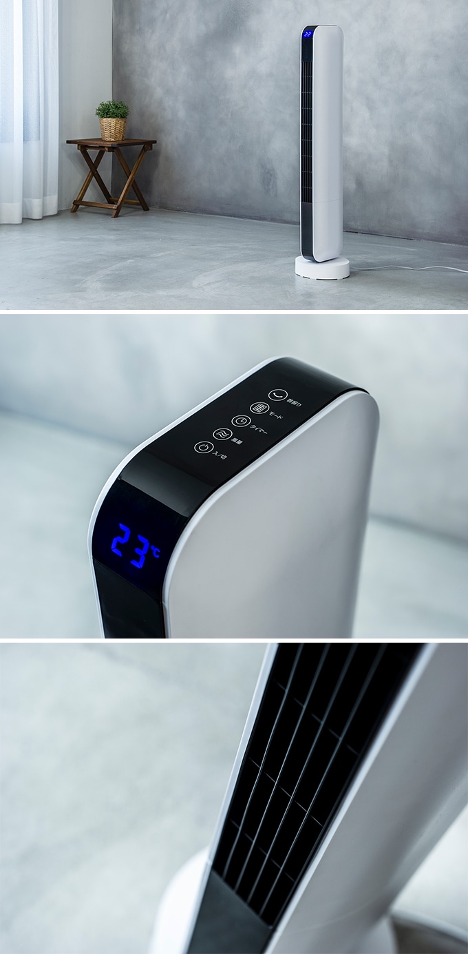 ■超スリムデザインのタワー型扇風機。直径20cmのスペースで設置が可能!