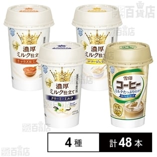 【4種48本】雪印コーヒー ミルクたっぷり仕立てカフェインレス12本/濃厚ミルク仕立て キャラメルミルク12本/クリーミーミルク12本/フロマージュミルク12本