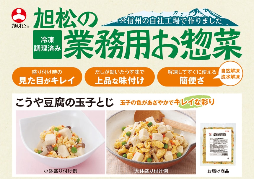 - 旭松の冷凍業務用お惣菜こうや豆腐の玉子とじ