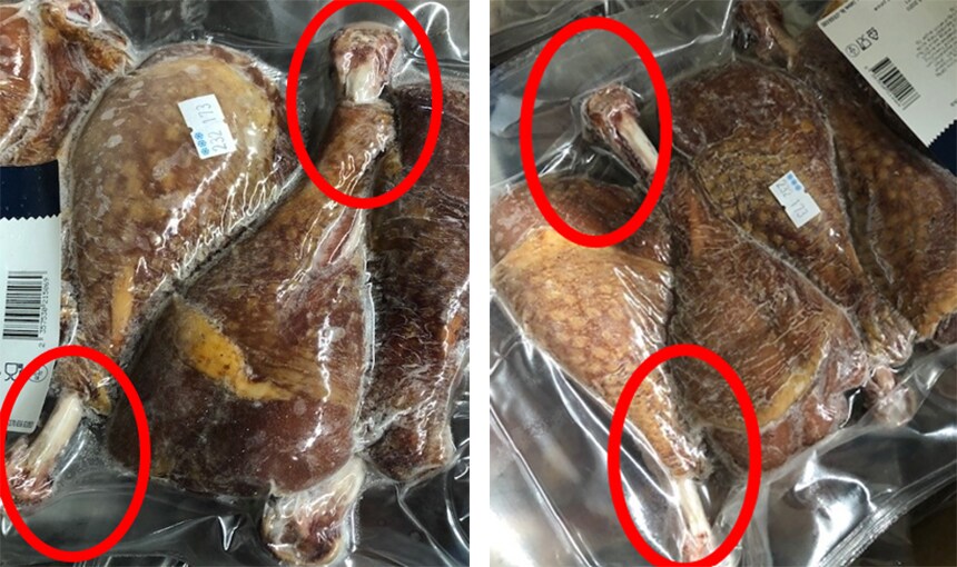 そのまま食べる食品(調理済みお肉)でこの状態は正直怖いです。
