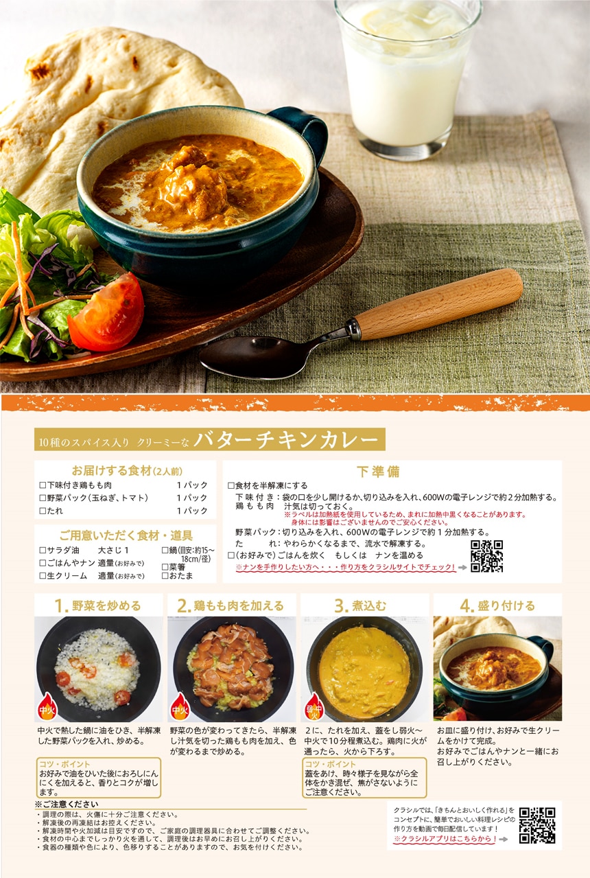 【クラシル 10種のスパイス入り クリーミーな「バターチキンカレー」キット】乳成分・小麦・大豆・鶏肉