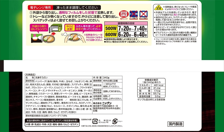 ・ニップン よくばりプレート 煮込み風ハンバーグ&ジューシーナポリタン 340g×1食