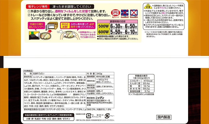 ・ニップン よくばりプレート 和風おろしハンバーグ&香味醤油スパゲッティ 340g×1食
