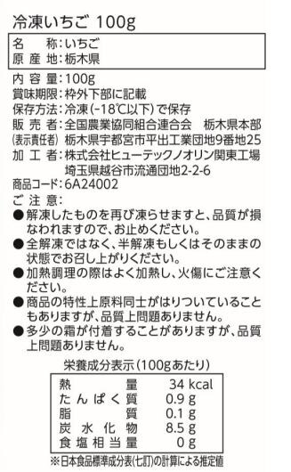 - 【36袋】 JA全農とちぎ 冷凍いちご 100g