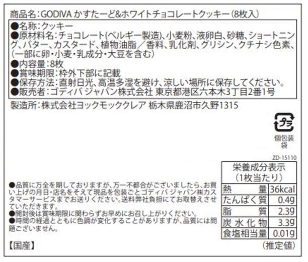 - GODIVA かすたーど&ホワイトチョコクッキー 8枚入