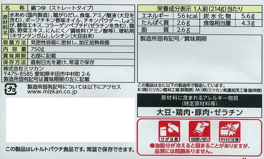 - ミツカン 〆まで美味しい 濃厚鶏白湯鍋つゆ ストレート 750g(3~4人前)