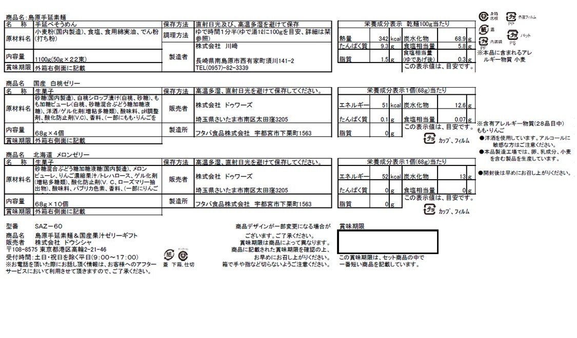 【下段】ゼリー(北海道メロン×10・国産白桃×4)各68g