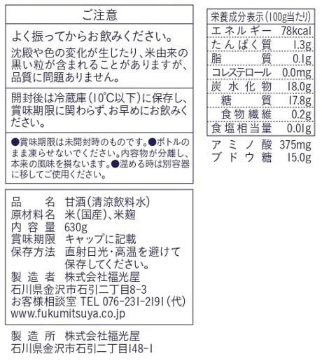 [12本]福光屋 酒蔵仕込み 純米 糀あまざけ 630g | 1625年創業の金沢で最も長い歴史と伝統を誇る酒蔵、福光屋が米と麹のみでつくるこだわりの甘酒。