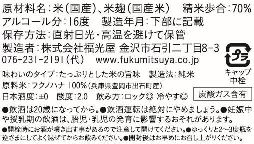 契約栽培・特別栽培米「フクノハナ」を100%使用。お米の旨味がたっぷりのにごり酒を瓶詰めした後、さらに酵母によって瓶内醗酵させ、炭酸ガスを封じ込めました。