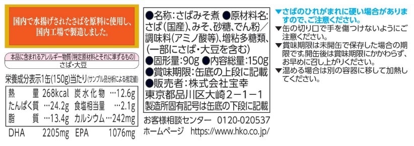 国内で水揚げされたさばを原料に使用し、味噌煮で味付けしております。