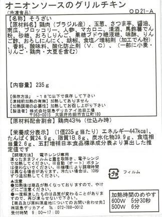・オニオンソースのグリルチキン 235g×3個(賞味期限:2023/07/21)