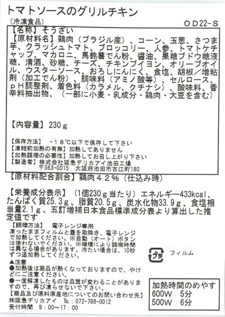 ・トマトソースのグリルチキン 230g×3個(賞味期限:2023/06/23)