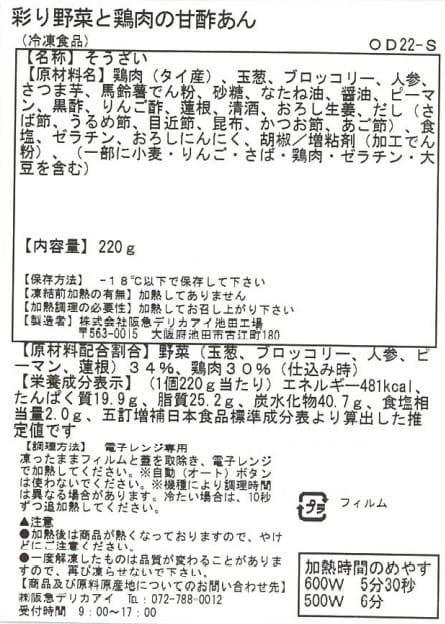 ・彩り野菜と鶏肉の甘酢あん 220g×3個(賞味期限:2023/07/22)