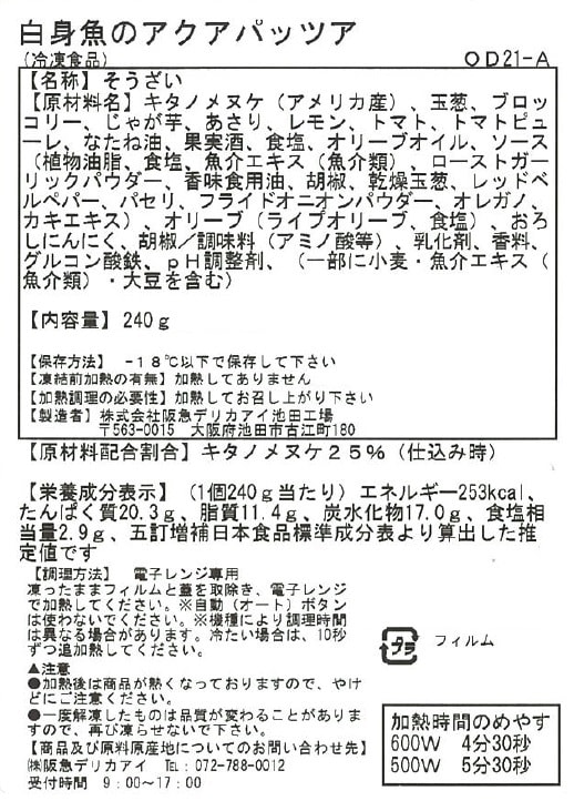 【白身魚のアクアパッツァ】小麦・魚介エキス(魚介類)・大豆
