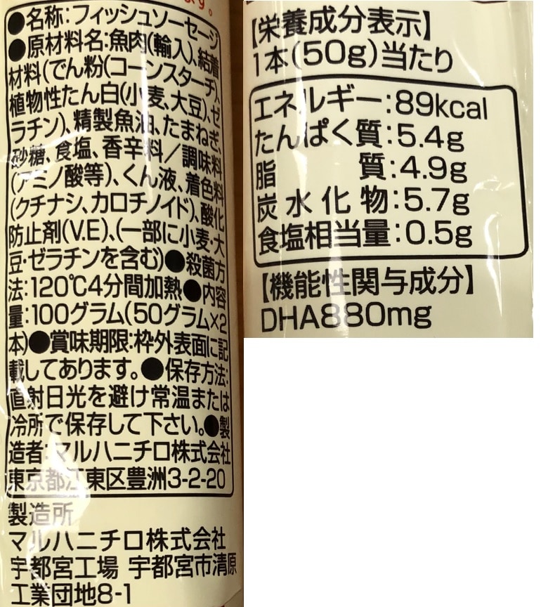 - 【機能性表示食品】 DHAのチカラソーセージ 記憶をサポート 50gx2本入り