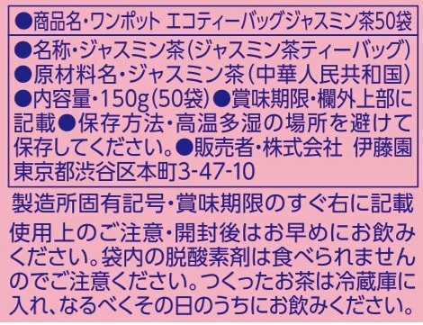 [計1000袋]伊藤園 ワンポット エコティーバッグ Relaxジャスミン茶 150g(50袋入)×20個 | 心地よい香りが楽しめるジャスミン茶のティーバッグです。