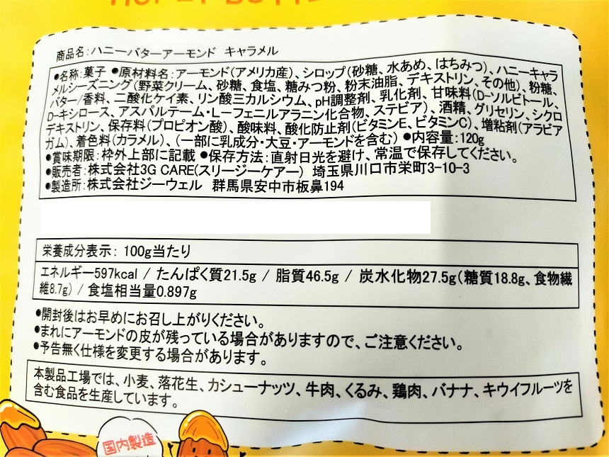 [20袋]3GCARE ハニーバターアーモンドキャラメル 120g | 焙煎したアーモンドに、甘くて香ばしいキャラメル、はちみつ&バターをたっぷりからめて仕上げました!