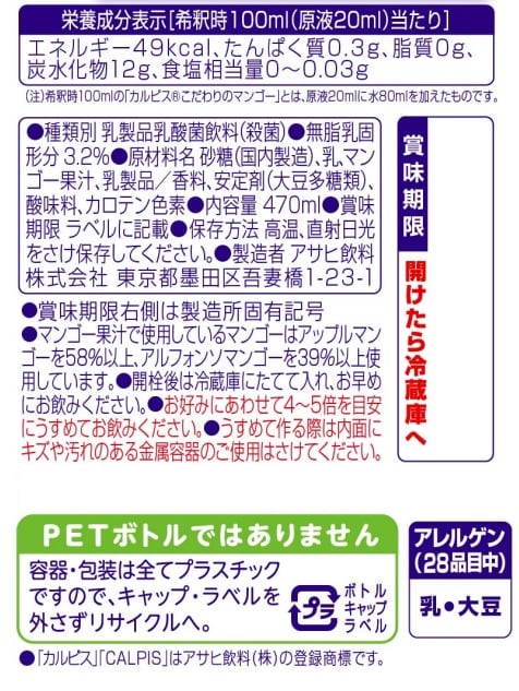 - 【初回限定】「カルピス(R)こだわりのマンゴー」プラスチックボトル 470ml