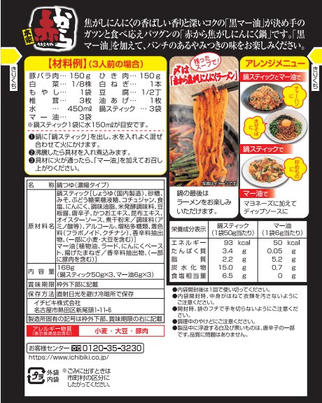 [計60人前]イチビキ 赤から 焦がしにんにく鍋 3人前(168g)×20個 | 焦がしにんにくの香ばしい香りと深いコクの「黒マー油」が決め手の、ガツンと食べごたえのある鍋つゆです。