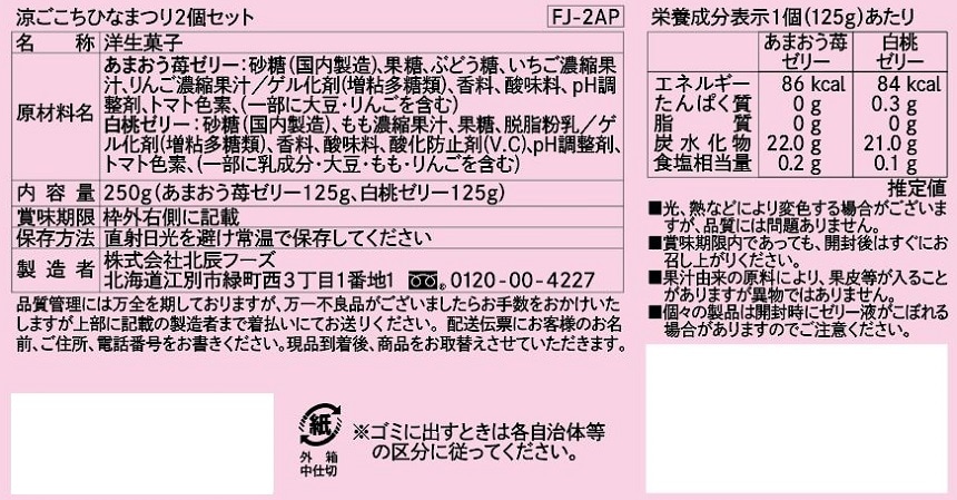 - 涼ごこちひな祭り2個セット(あまおう苺ゼリー 125g/白桃ゼリー 125g)