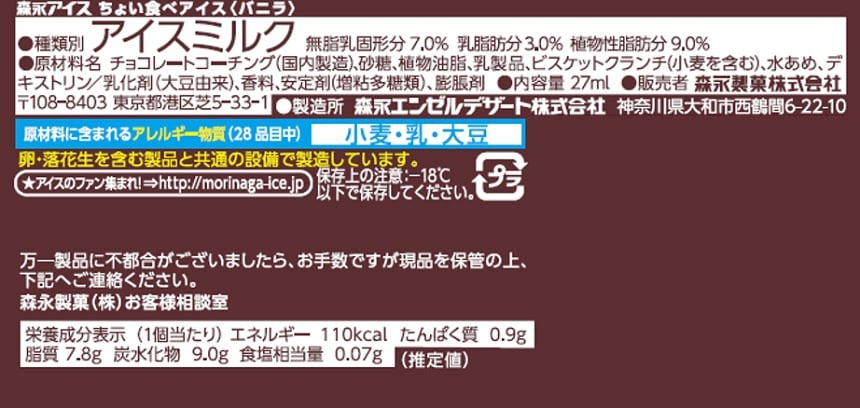 ※アイスクリーム類は、-18度以下での冷凍保存の状態では、品質の劣化が極めて小さい食品となりますので、賞味期限の設定がされておりません。