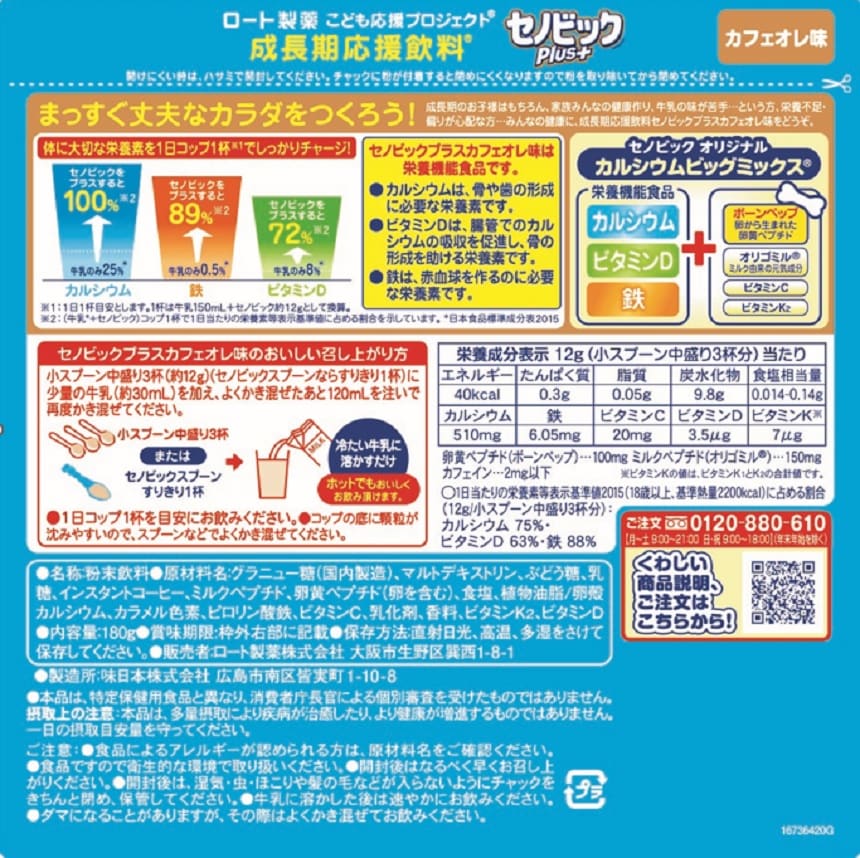 [12個]ロート製薬 セノビックPlus カフェオレ味 180g | 牛乳に溶かして飲む栄養機能食品。ホットでもアイスでも、時間を気にせず飲みやすいカフェインレス。