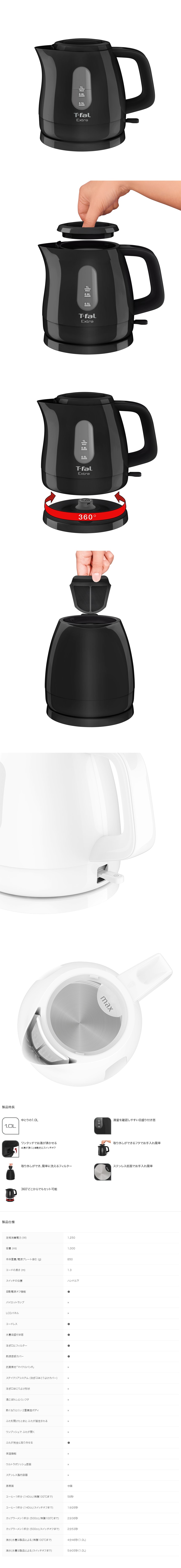 [エクストラ ブラック/1.0L] T-fal(ティファール)/電気ケトル/KO1718JP|コンパクトなのに嬉しい1.0L!あっという間にすぐに沸く、ティファールの電気ケトル!新生活などに。