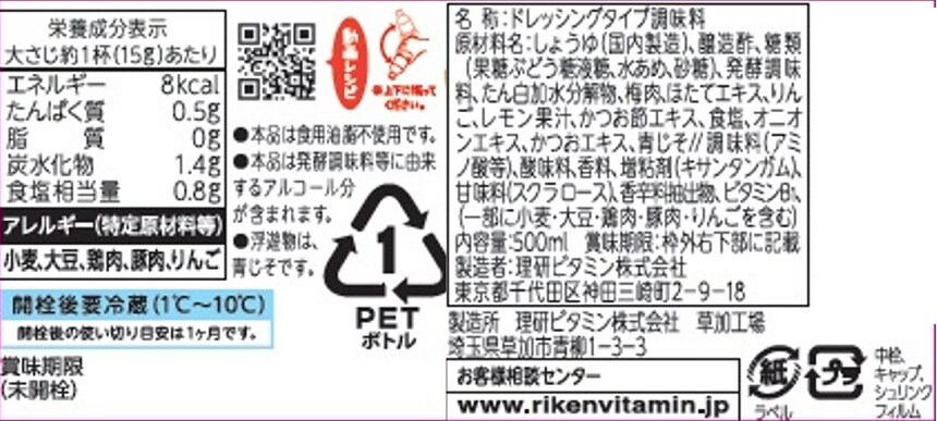 - リケンのノンオイル 青じそ 500ml/リケンのノンオイル 塩レモン 380ml
