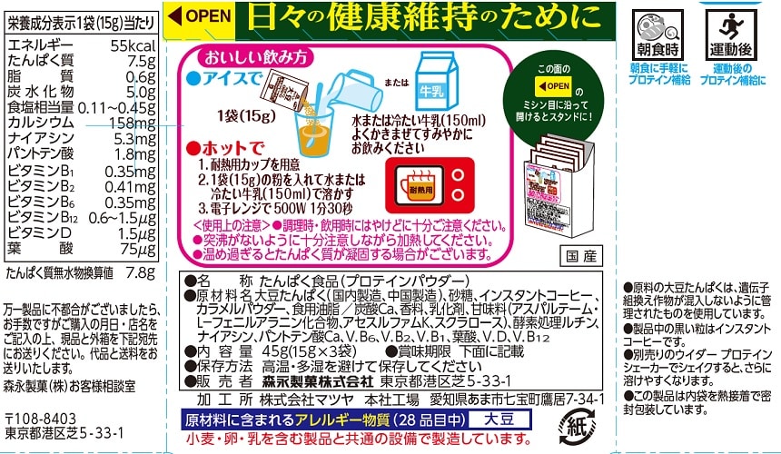 [2種計144杯]森永製菓 おいしい大豆プロテイン ミニパック 2種セット (コーヒー味/ビターチョコ味) | 食事や間食にも取り入れやすい個包装のプロテインパウダーです。