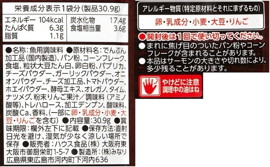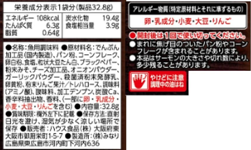 - ザックザックフィッシュ<トマトチーズ風味のサーモン焼き> 30.9g/ザックザックフィッシュ<マヨペッパー風味のサーモン焼き> 32.8g