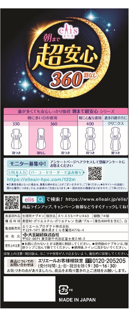 - 【医薬部外品】朝まで超安心 360 特に多い日の夜用 羽なし 36cm 14枚入
