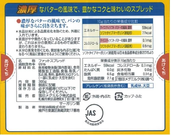 濃厚なバターの風味で、豊かなコクと味わいのファットスプレッドです。