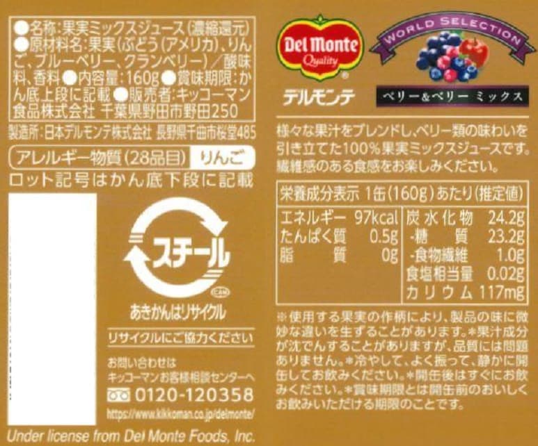【デルモンテ WORLD SELECTION ベリー&ベリーミックス】