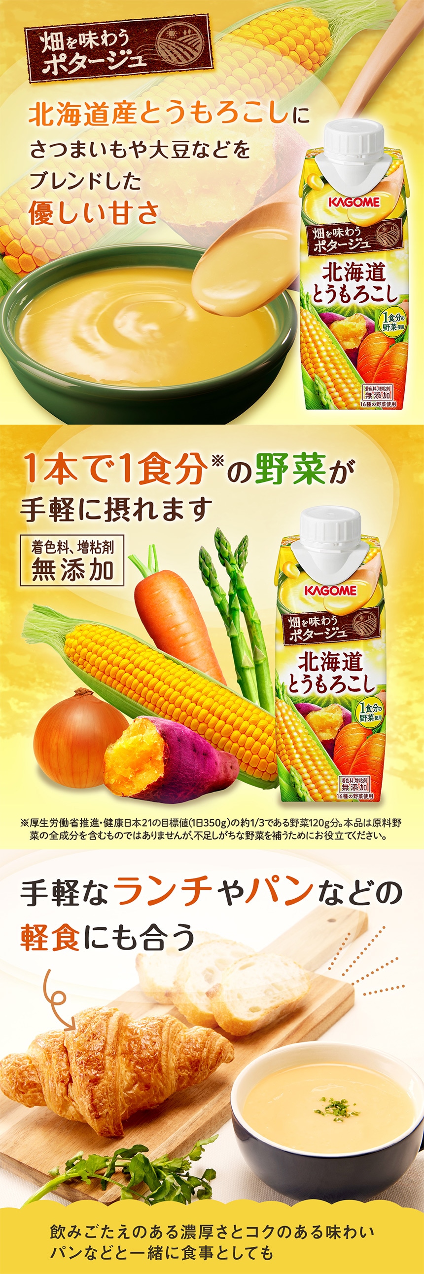カゴメ独自の「野菜だし」を配合することで、パンなどの食事に合う味わいに仕上げました。