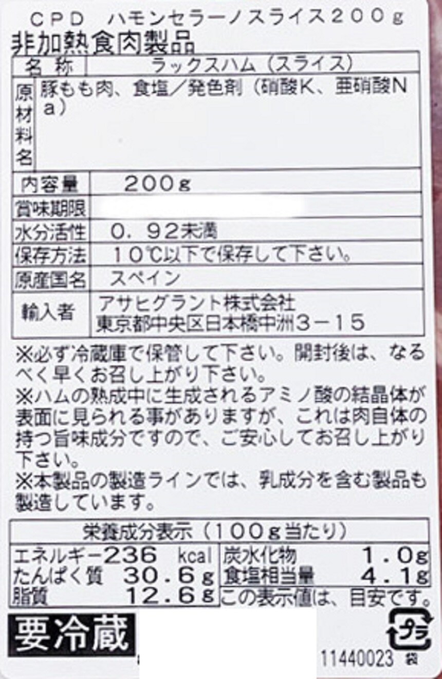 - [冷蔵]アサヒグラント CPD ハモンセラーノ スライス 200g×5個