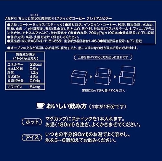 [2箱]味の素AGF ちょっと贅沢な珈琲店 スティックコーヒープレミアムビターZSB-30S 7g×100本入 | お得なインスタントスティックコーヒー100本セット