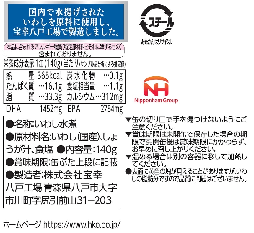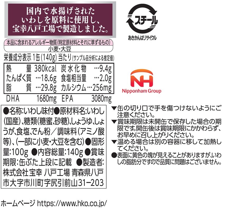 - 日本のいわし水煮 140g / 日本のいわし味付 140g / 日本のいわし味噌煮 140g