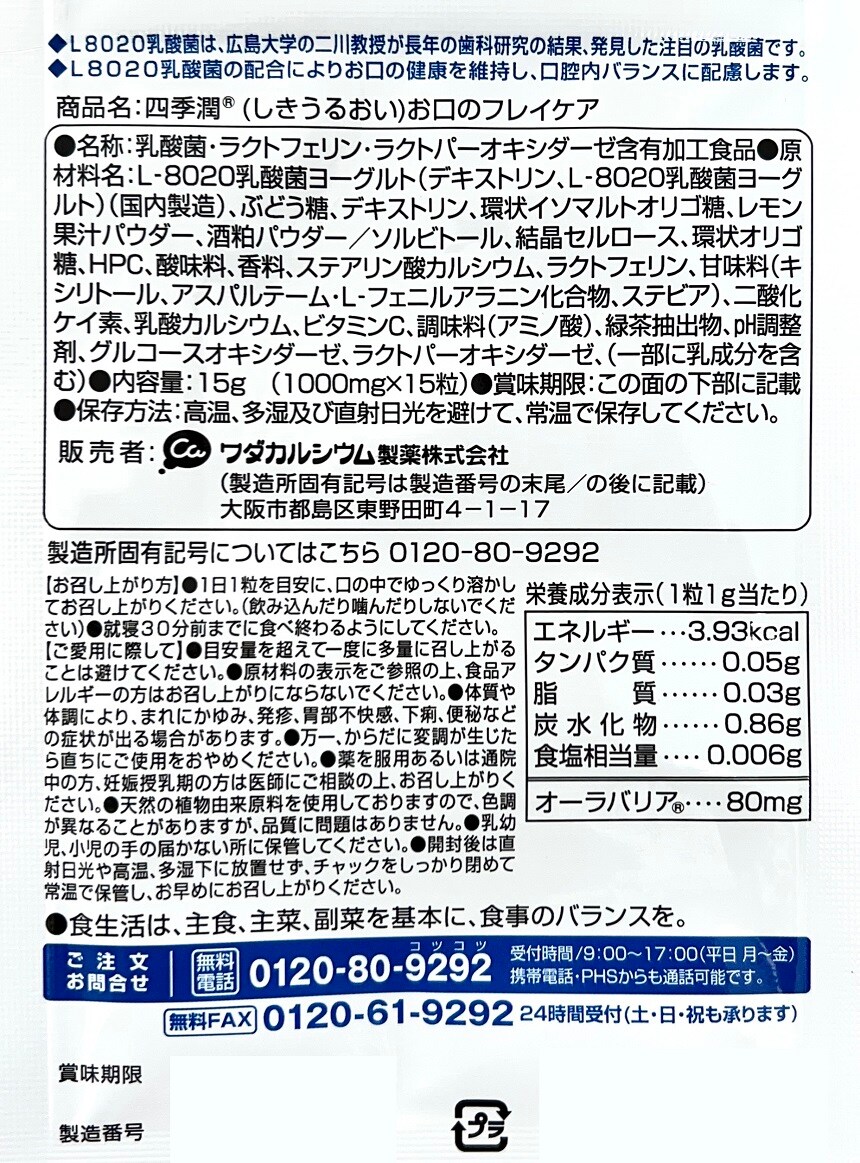 「L8020 乳酸菌」、オーラバリア、サイクロデキストラン
