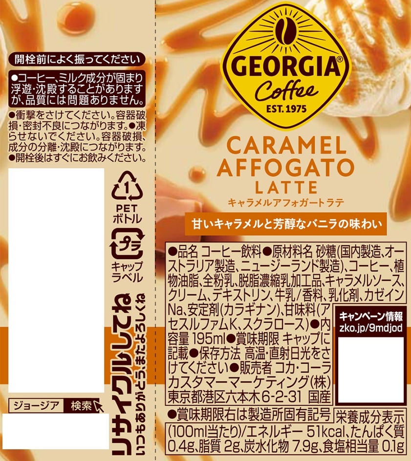 昼食後やおやつの時間、仕事・勉強の合間などに、ぜひ『ジョージア キャラメルアフォガート ラテ』で贅沢な甘さのご褒美をお楽しみください。