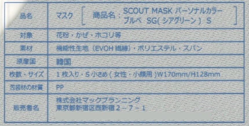 【SCOUT MASK パーソナルカラー ブルベ シアグリーン 】