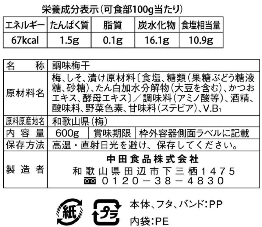 - 中田食品 紀州梅ぼし田舎漬 600g
