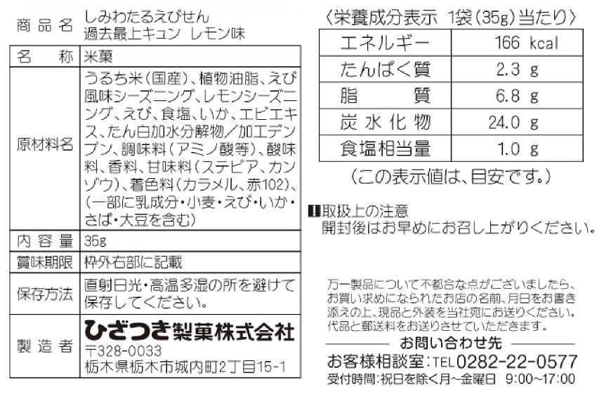 - しみわたるえびせん 過去最上キュンレモン味 35g