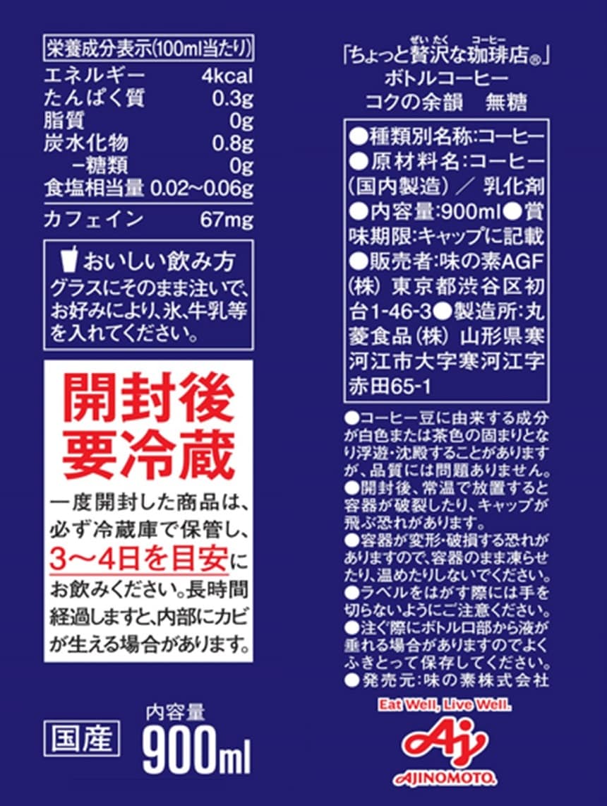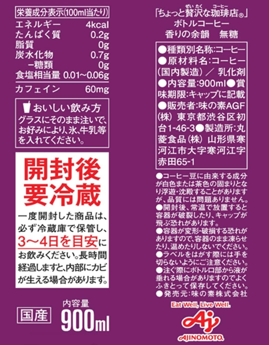 ・コクの余韻 無糖 900ml×4本