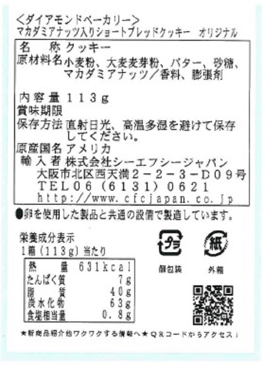 - ダイアモンドベーカリー マカダミアナッツショートブレッド オリジナル 113g