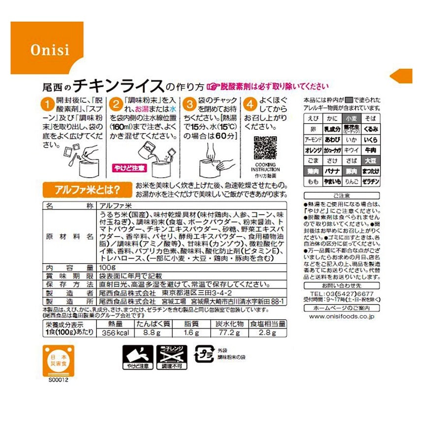 - 尾西食品 アルファ米 チキンライス 1食分 非常食 長期保存 100g×5個